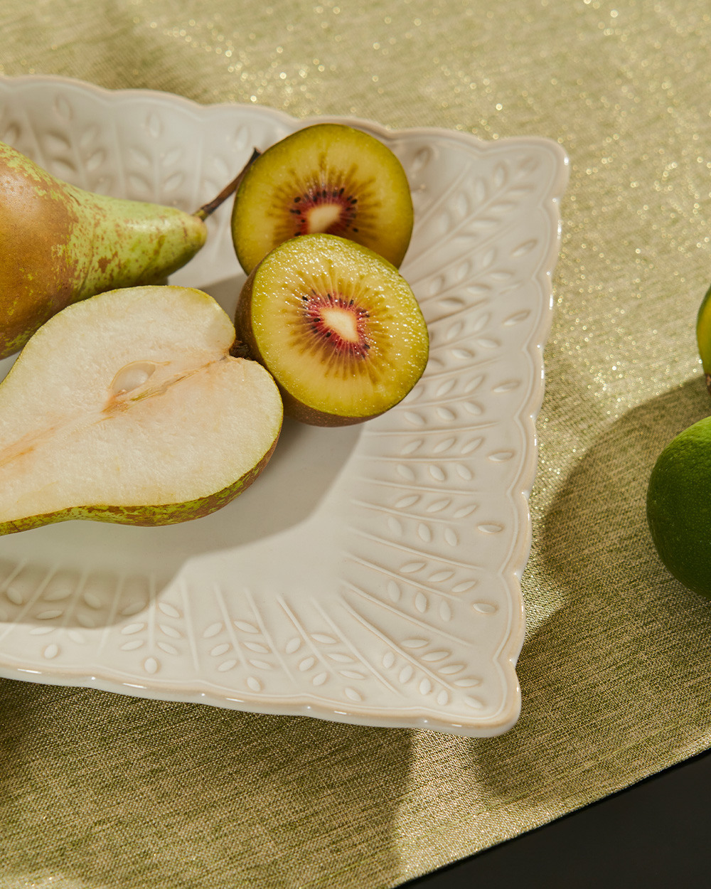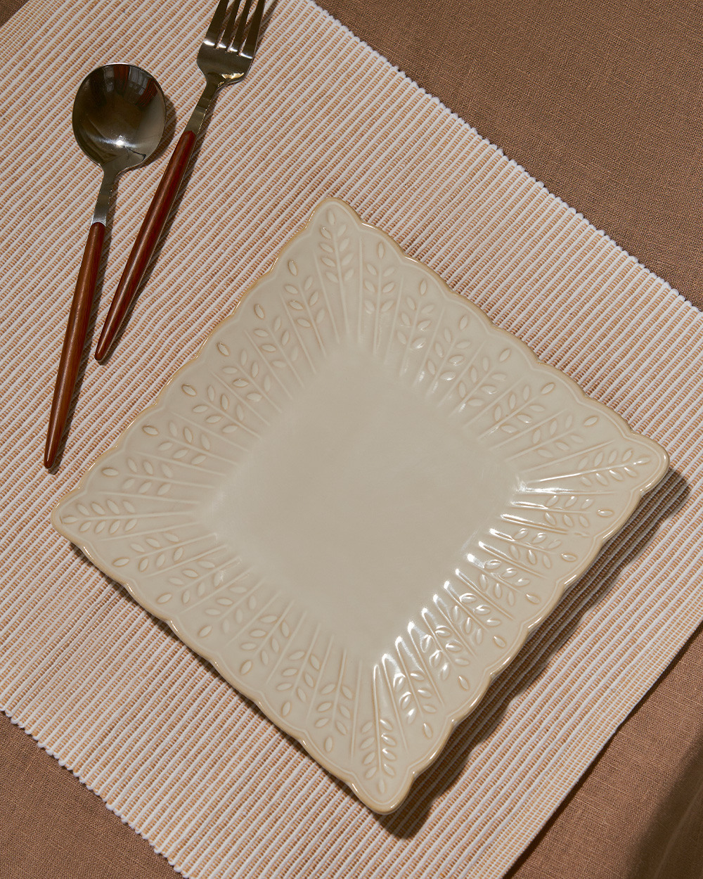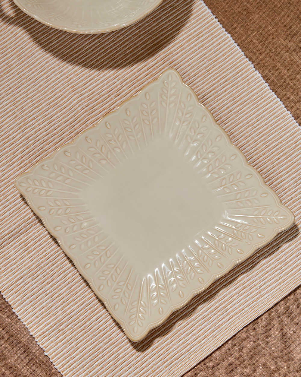 Квадратная тарелка молочного оттенка с деликатным узором в виде колосьев – лаконичное и изысканное решение для праздничной и повседневной сервировки.