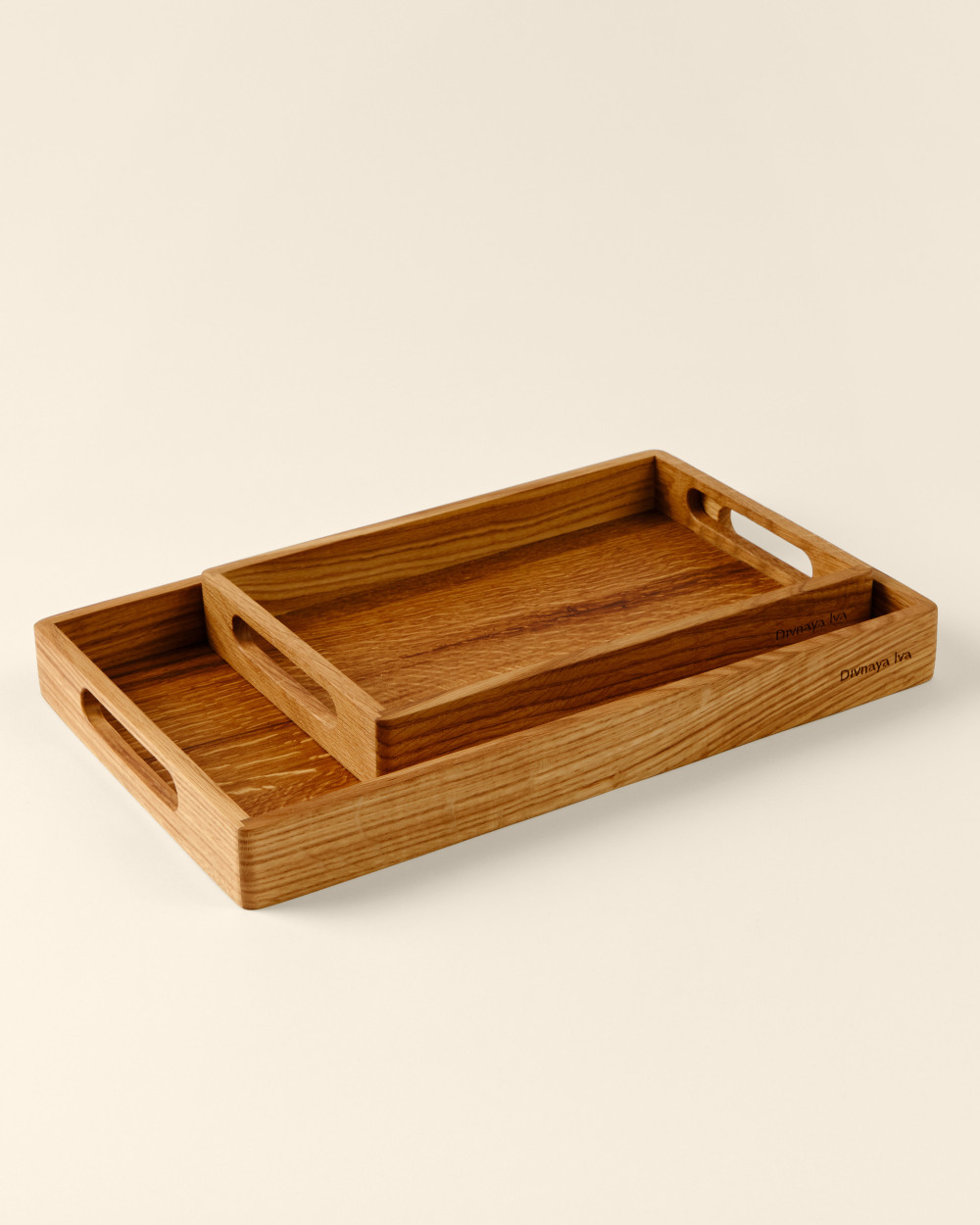 ​Подарочный набор подносов из массива дуба - это не просто функциональный предмет, но и стильное украшение для вашего дома. Он идеально подходит для различных целей, будь то поднос декоративный для украшения интерьера или поднос для кухни, который станет незаменимым помощником при сервировке стола.​