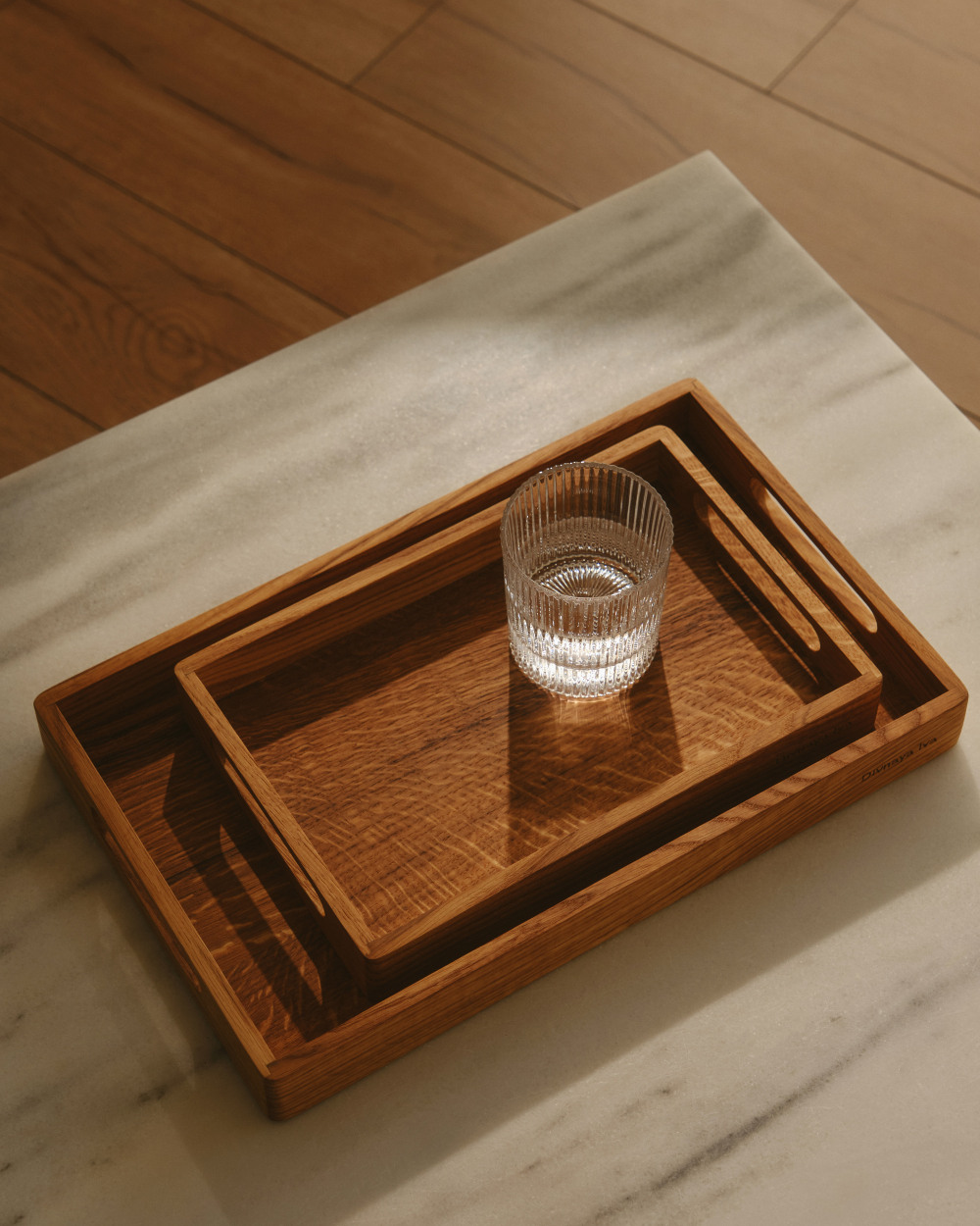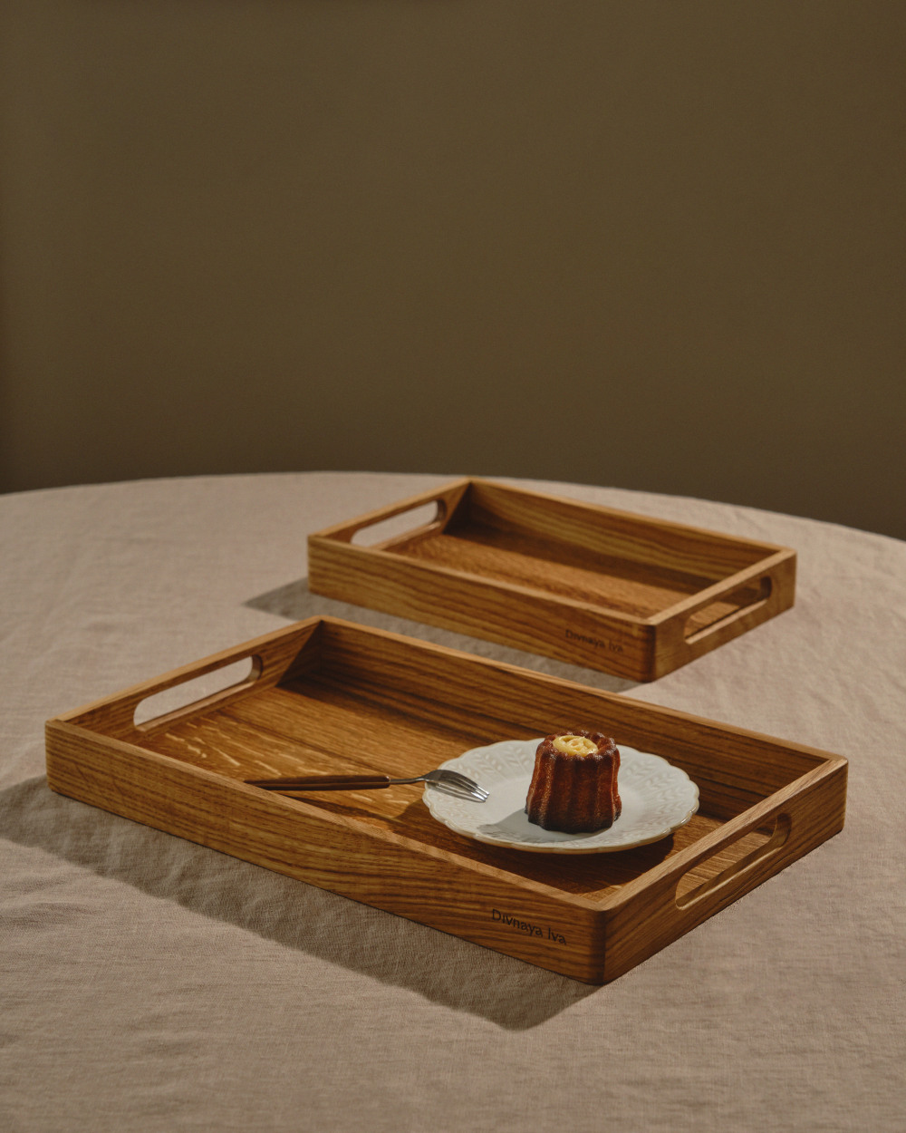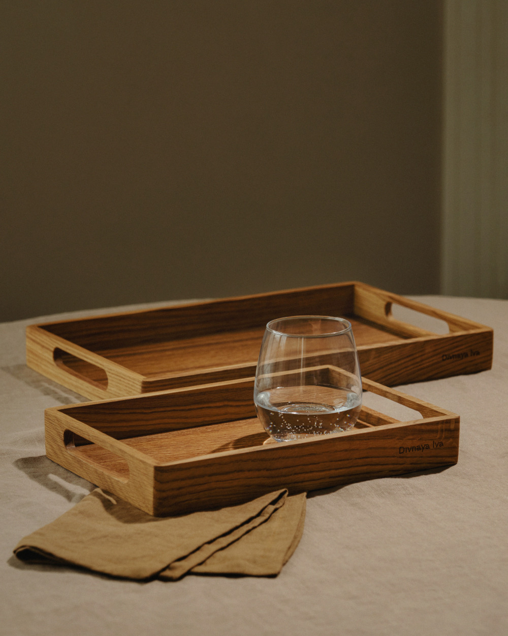Для производства подносов мы выбрали ценную породу дерева, которая известна красотой природного рисунка. Благородные оттенки и текстура дуба неповторимы, поэтому каждое изделие по-своему уникально. А обработка натуральным льняным маслом и пчелиным воском делают его безопасным и экологичным.