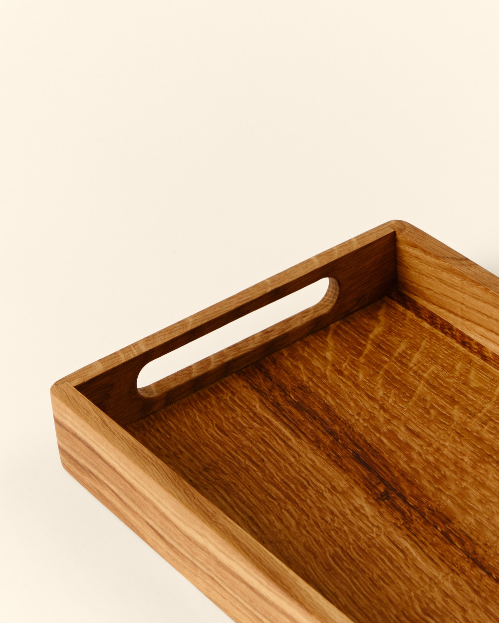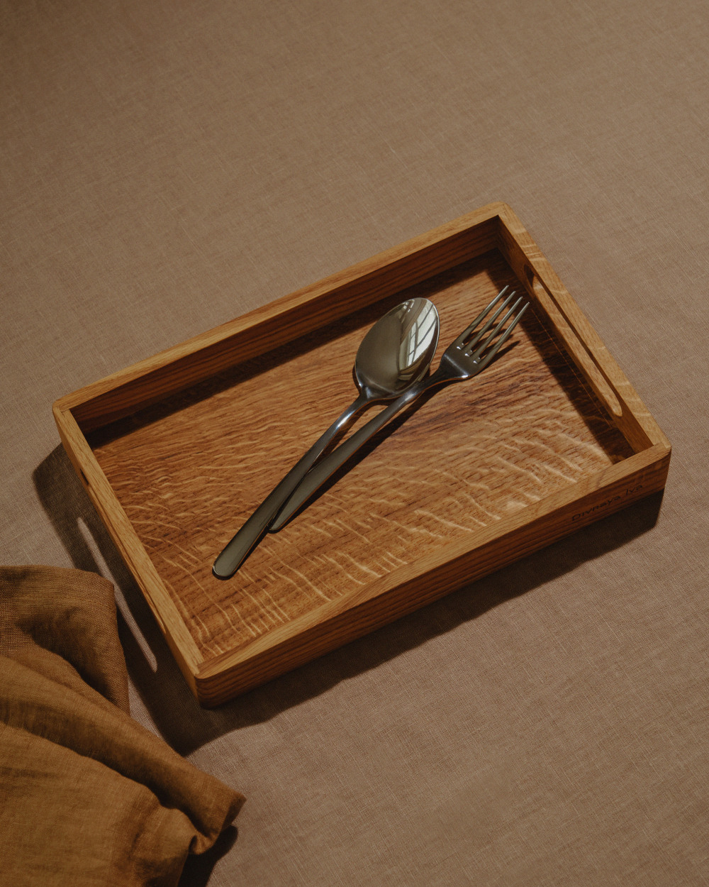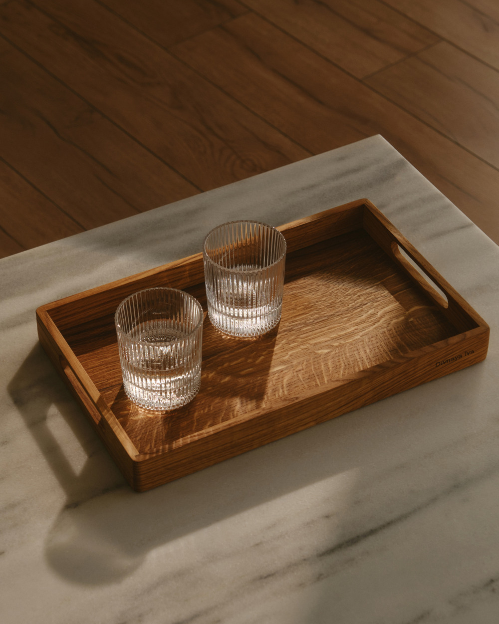Для производства подносов мы выбрали ценную породу дерева, которая известна красотой природного рисунка. Благородные оттенки и текстура дуба неповторимы, поэтому каждое изделие по-своему уникально. А обработка натуральным льняным маслом и пчелиным воском делают его безопасным и экологичным.