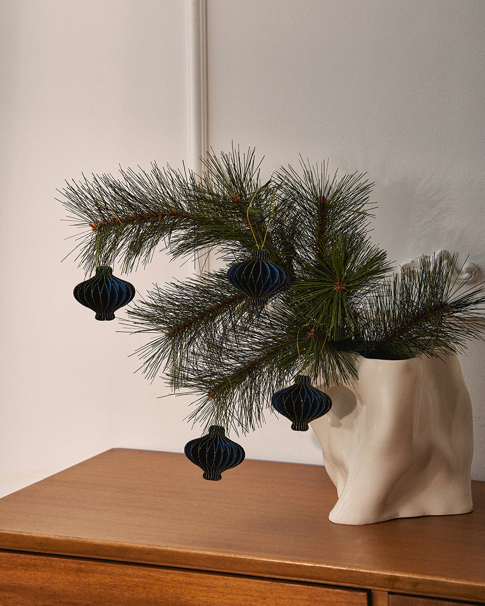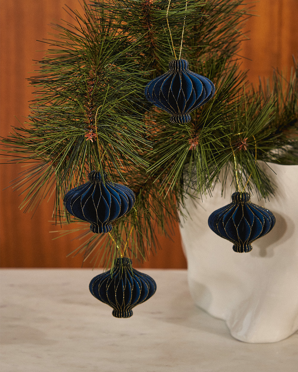 Декоративные елочные игрушки из плотной бумаги добавят волшебной атмосферы праздника в ваш дом. Богатая цветовая палитра и оригинальный лаконичный дизайн, соединяющий в себе скандинавский минимализм и воспоминания о бумажных гирляндах ручной работы, делают их идеальным украшением любого интерьера. Это отличное решение для декора, если дома есть маленькие дети.