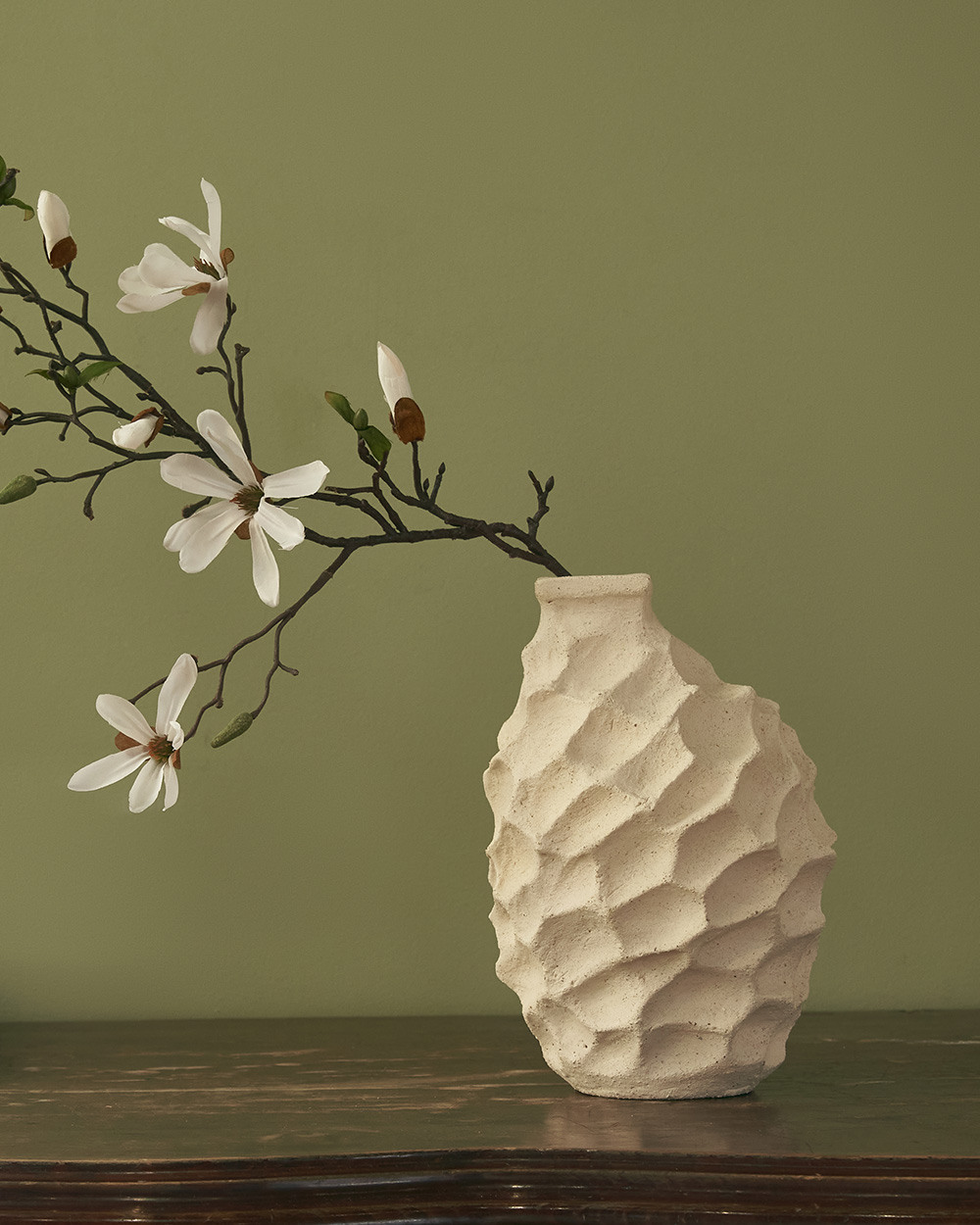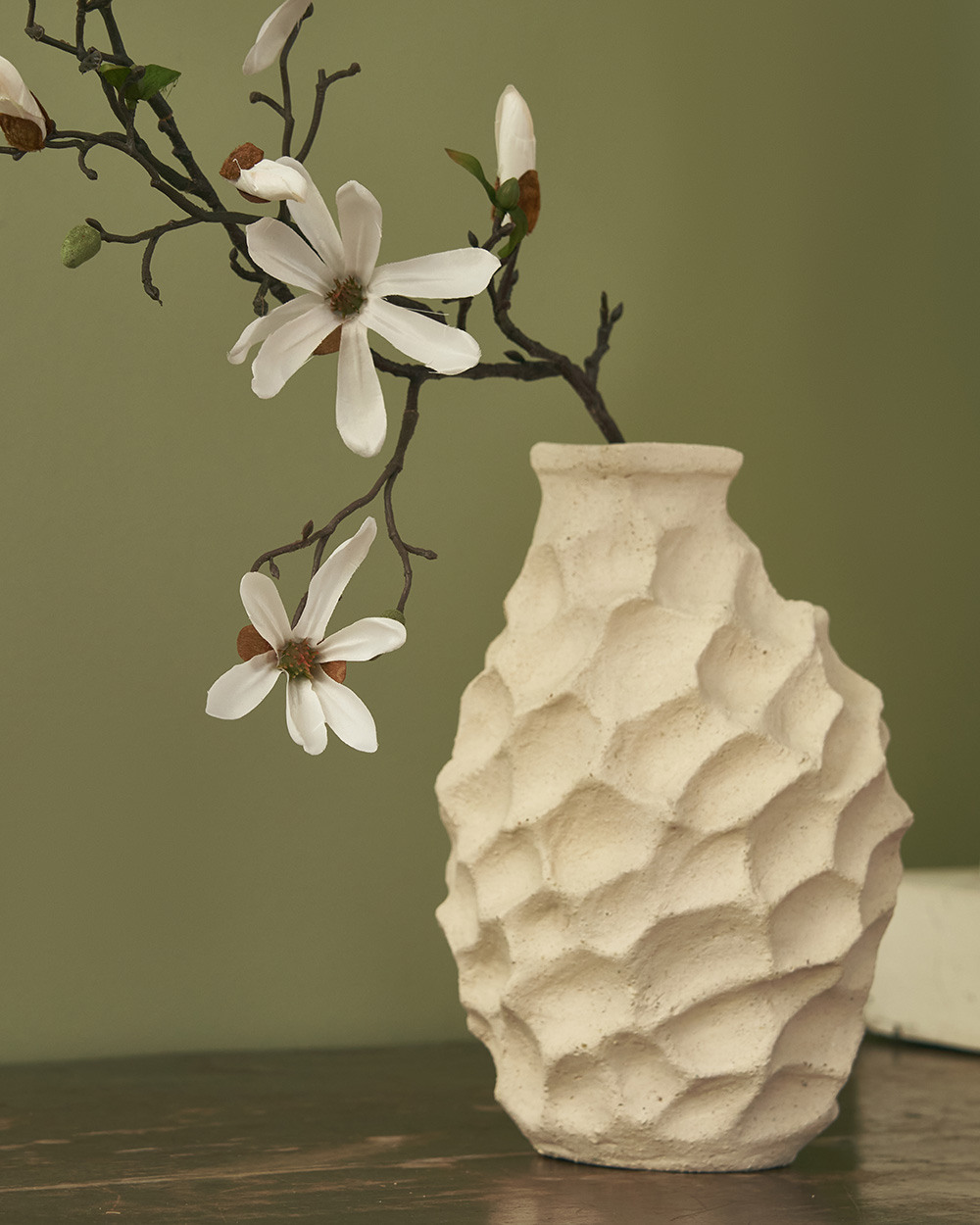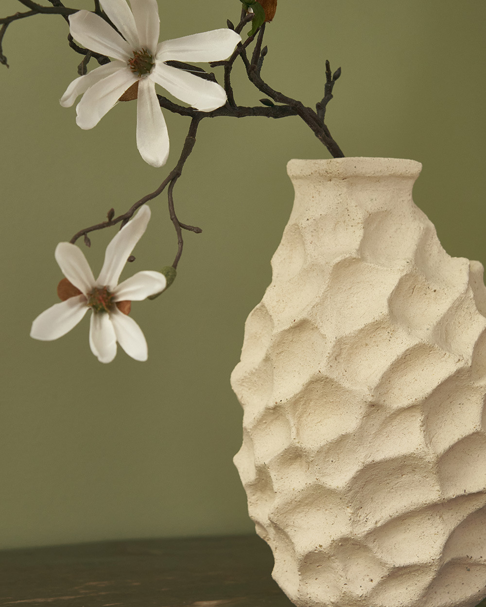 Эта уникальная керамическая ваза из благородного белого шамота создана руками талантливого кубинского мастера специально для нашего бренда. Ее природная красота рождена процессом ручного труда, который наполняет каждую вазу индивидуальностью и очарованием. Особенная зернистая фактура материала подчеркивает элегантность рельефа, имитирующего очертания лунных кратеров, приглашая нас окунуться в мир таинственности и ускользающей красоты.