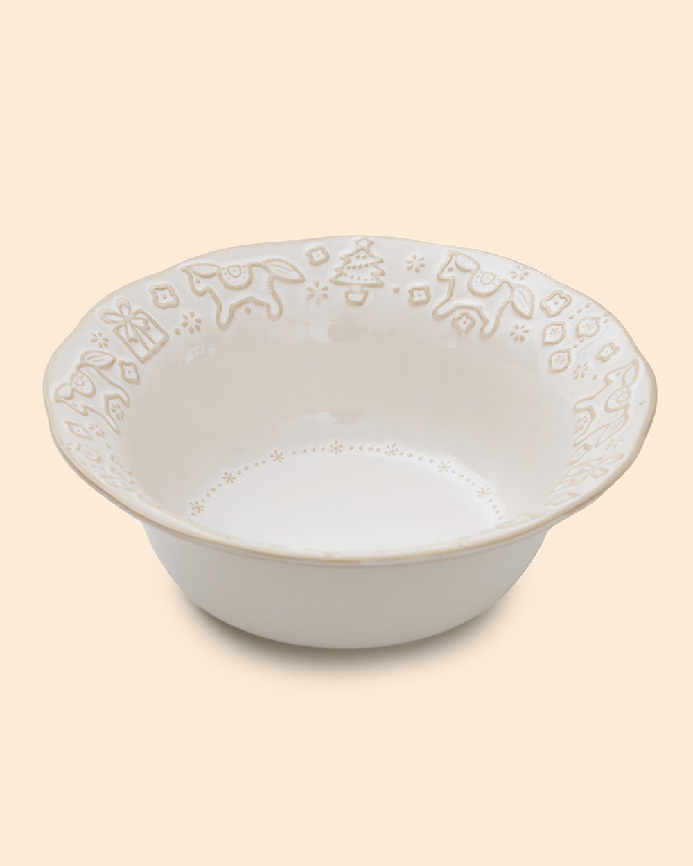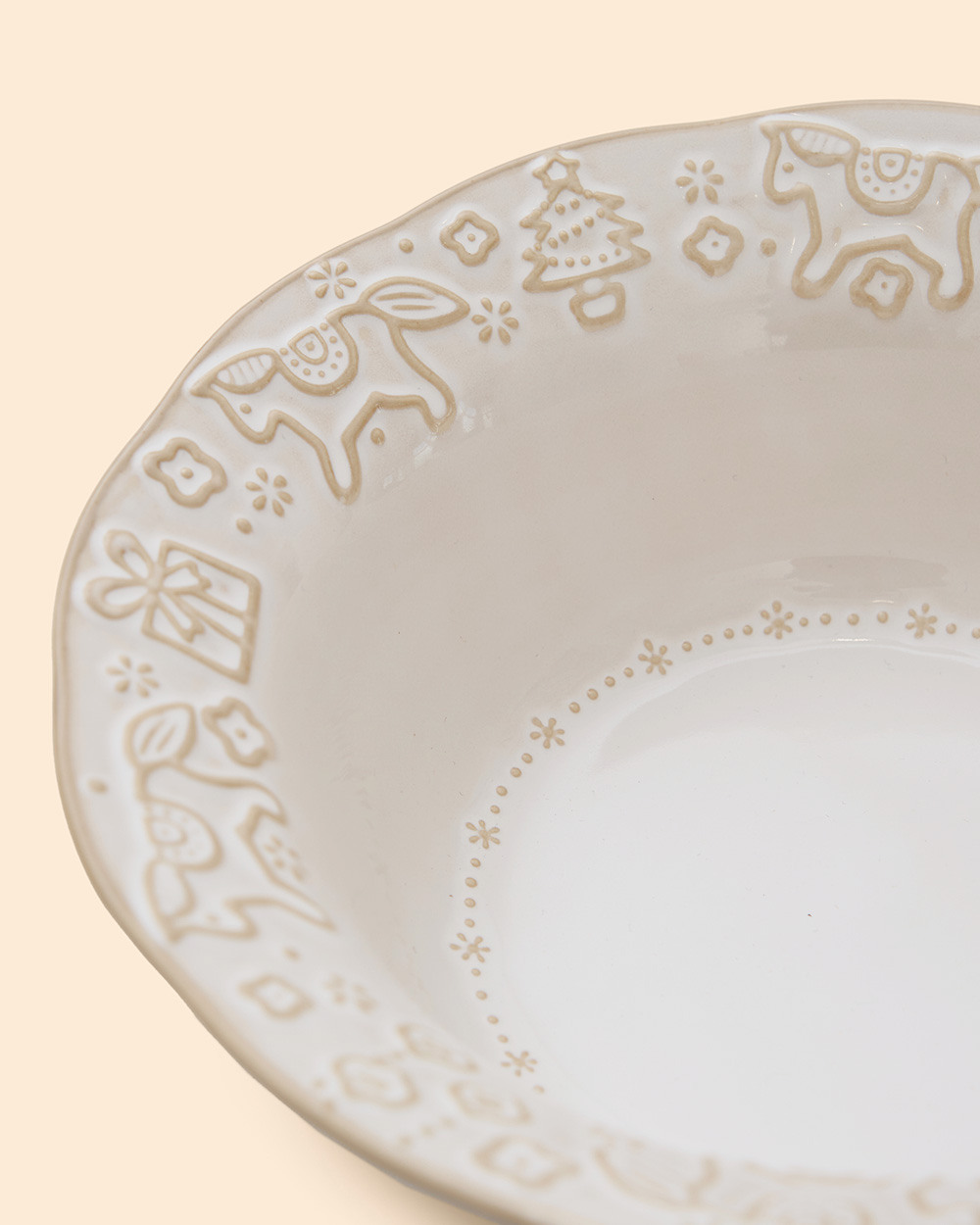 Новогодняя посуда из твердого фарфора, украшенная рельефным узором, воплощает в себе дух праздника и традиции. Каждый предмет этого набора - настоящий шедевр, созданный с любовью и вниманием к деталям. Рисунок, украшающий поверхность посуды, включает в себя классические символы Нового года: снежинки, елочки, подарки и другие элементы, которые ассоциируются с этим волшебным временем.