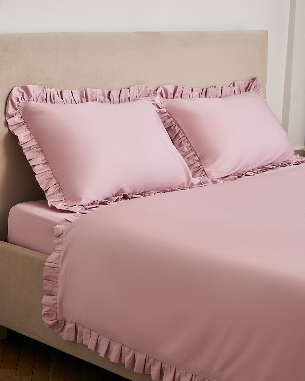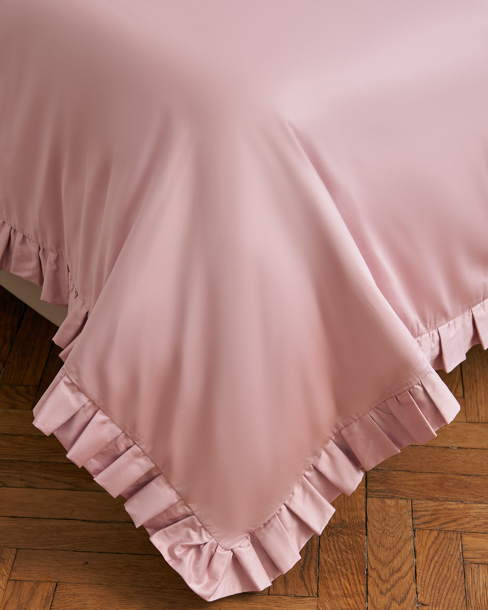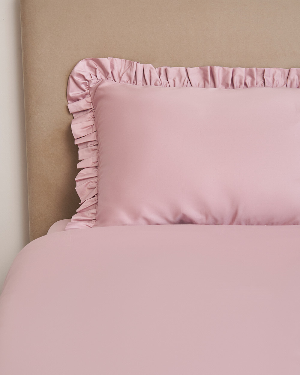 Пододеяльник из премиального сатина оформлен великолепными рюшами, которые образуют каскад изящных складочек вдоль всего периметра изделия.