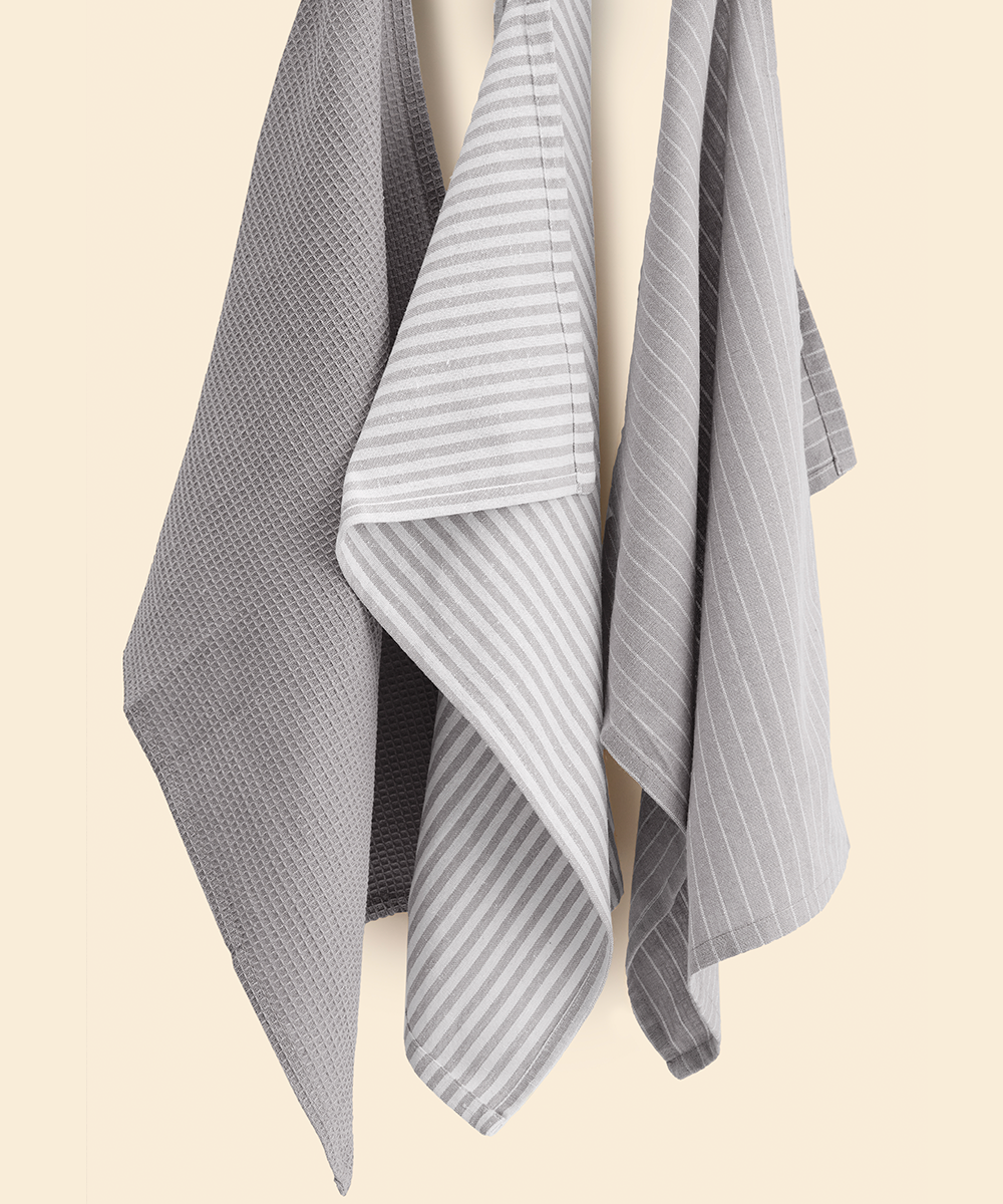 Набор из трех кухонных полотенец из натурального хлопка, серого оттенка