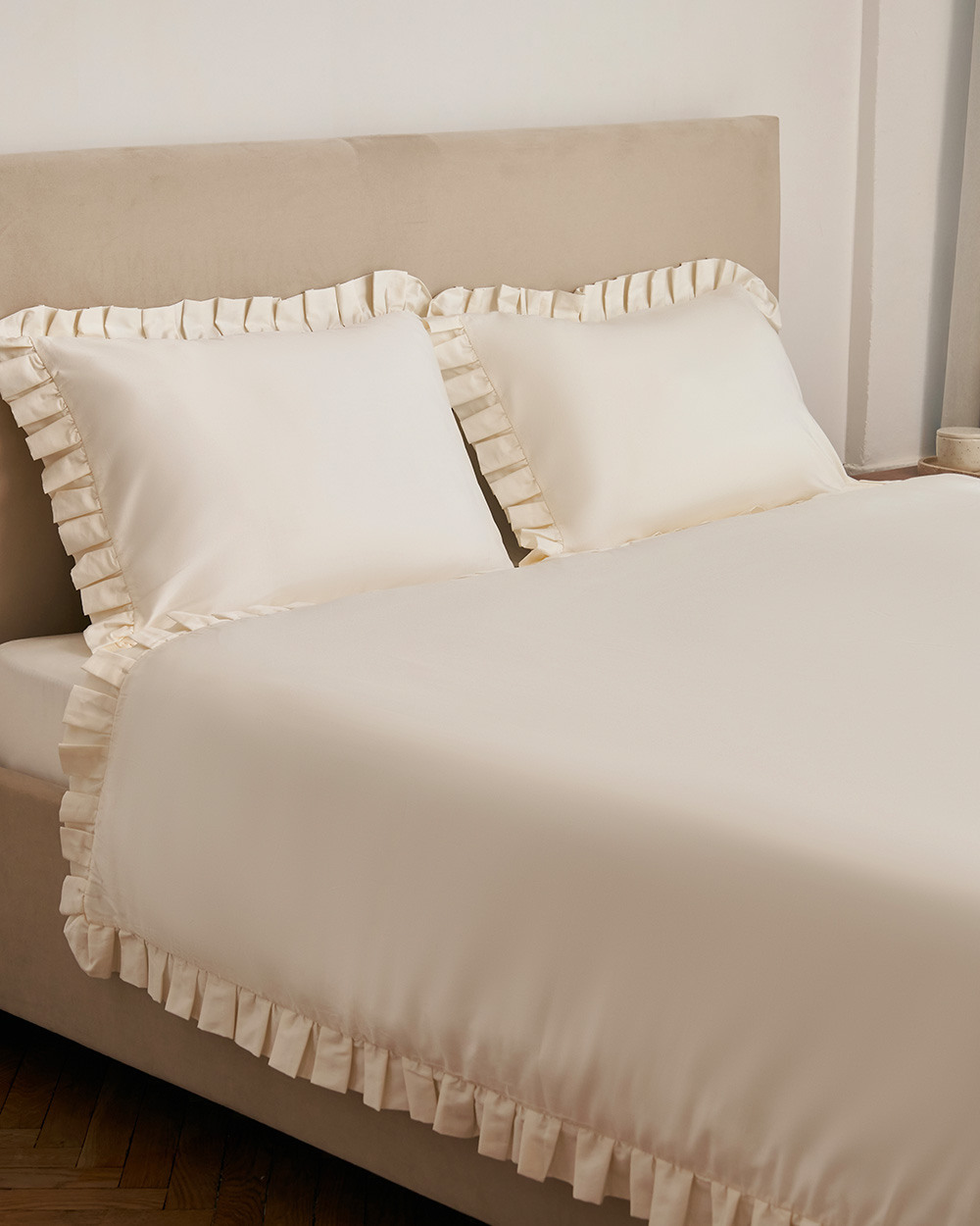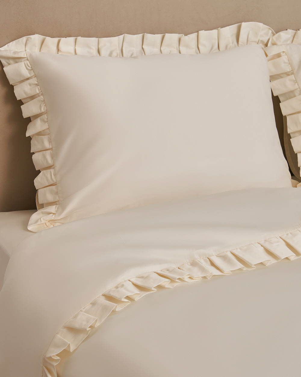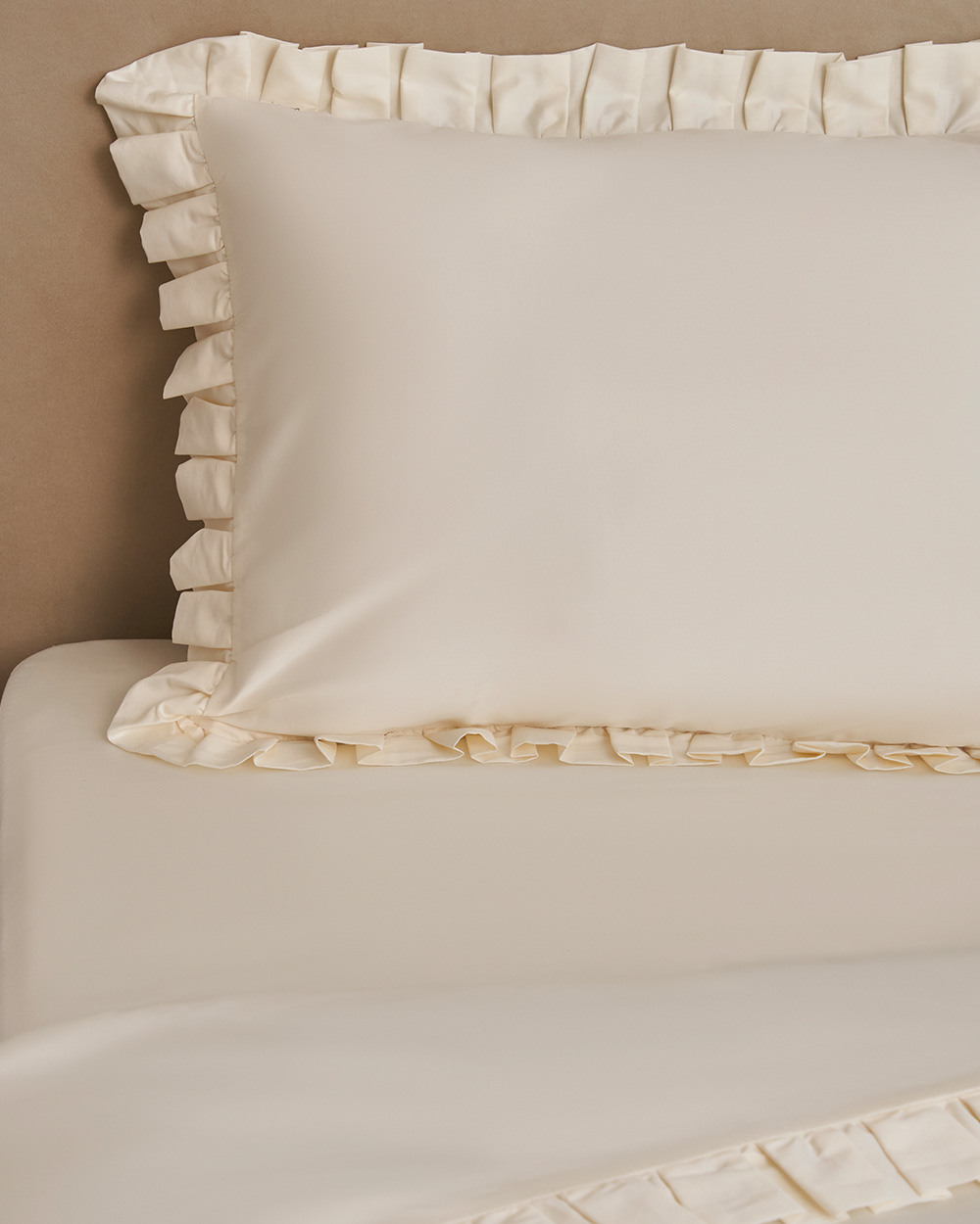 Наволочки из премиального сатина оформлены великолепными рюшами, которые образуют каскад изящных складочек вдоль всего периметра изделия.