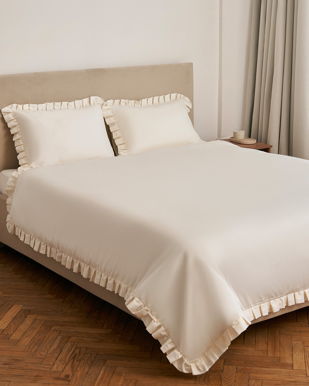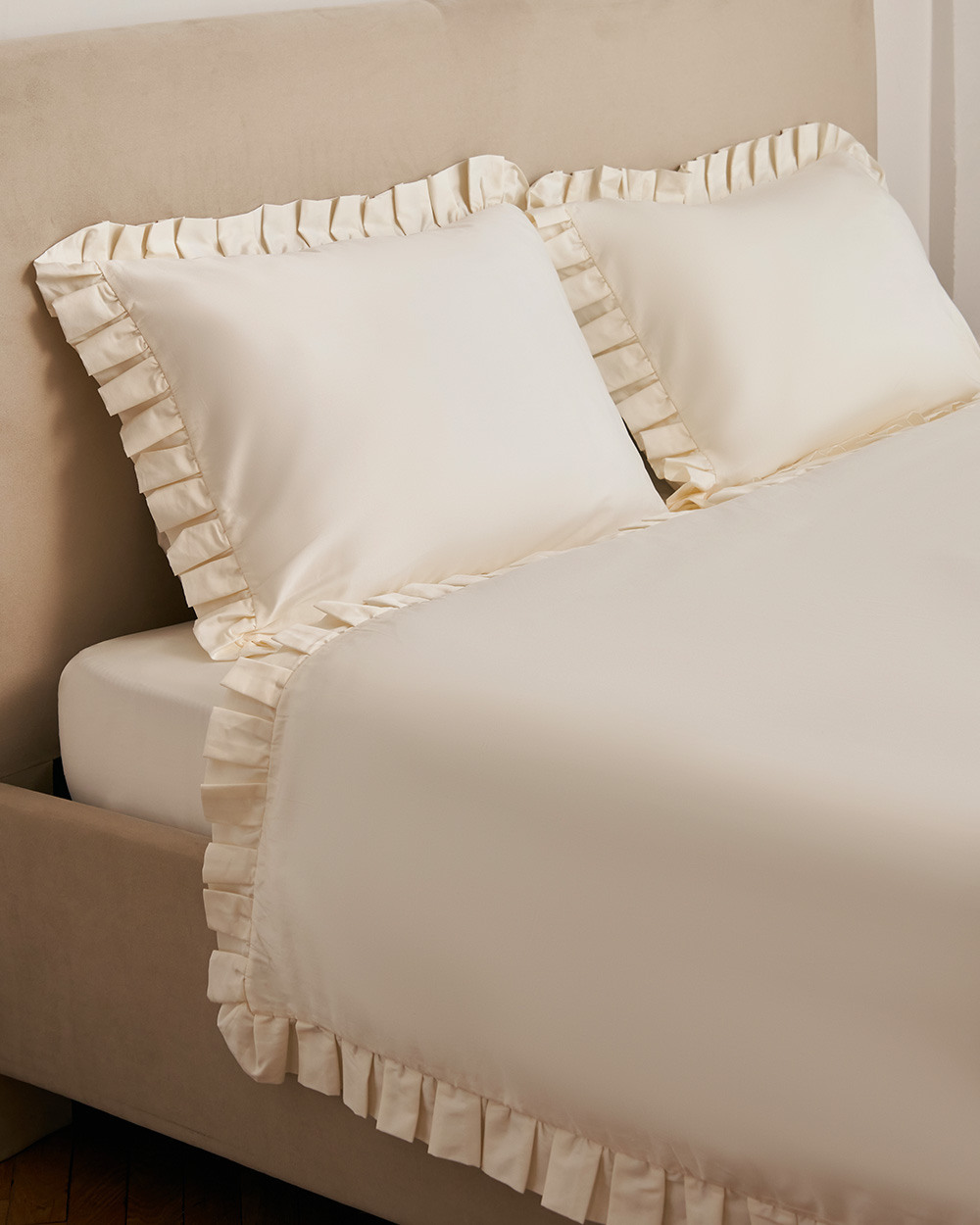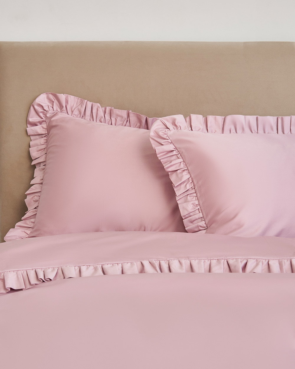 Наволочки из премиального сатина оформлены великолепными рюшами, которые образуют каскад изящных складочек вдоль всего периметра изделия.