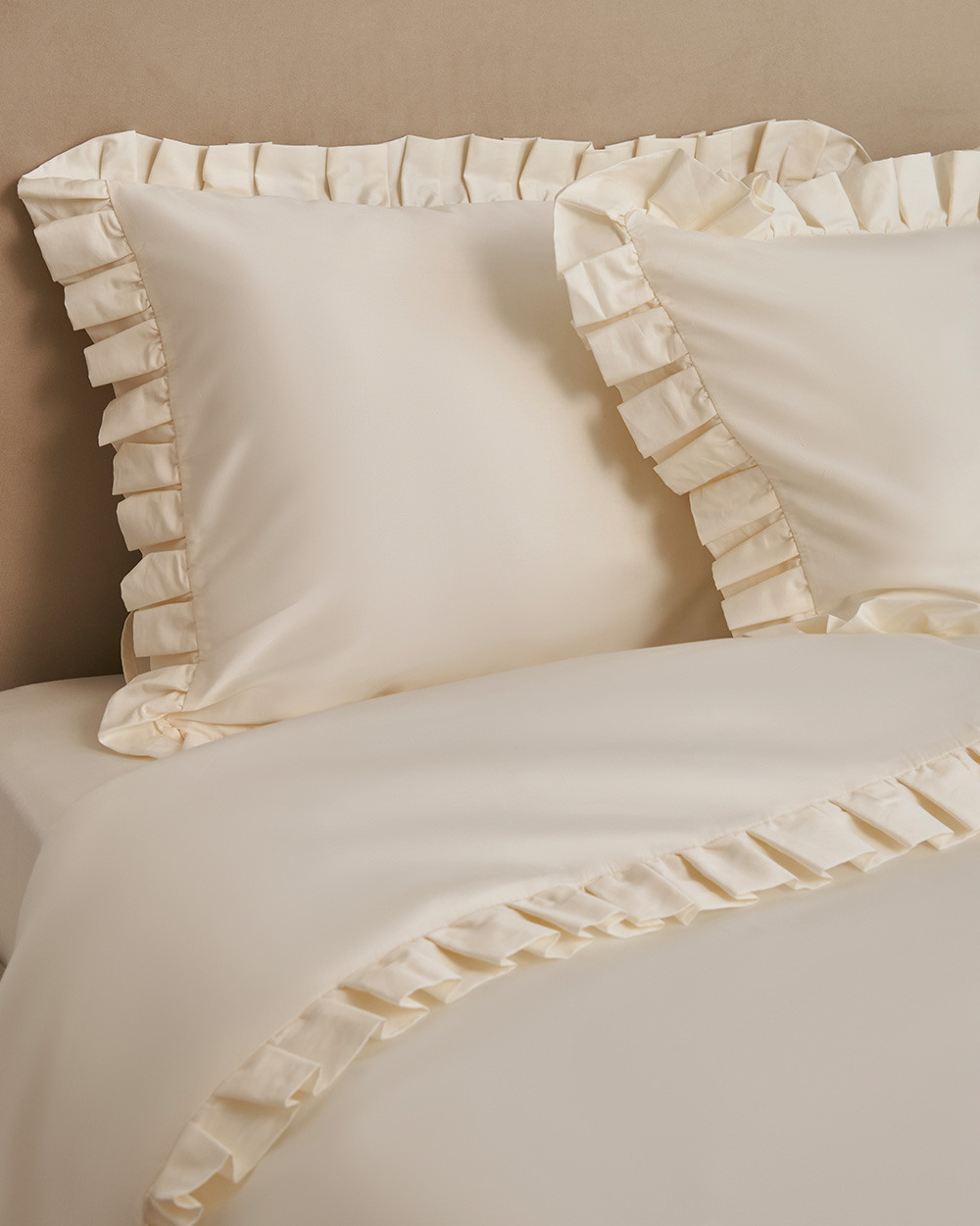Наволочки из премиального сатина оформлены великолепными рюшами, которые образуют каскад изящных складочек вдоль всего периметра изделия.