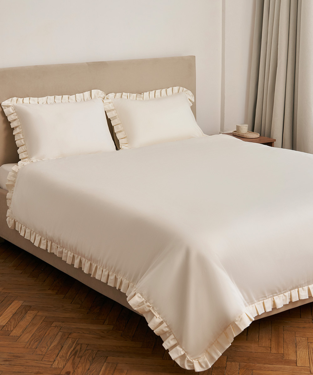 Простыня из сатина кремового оттенка из коллекции мильфлер.