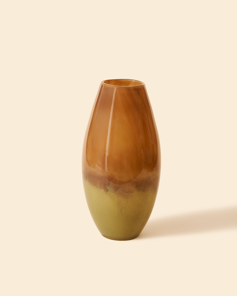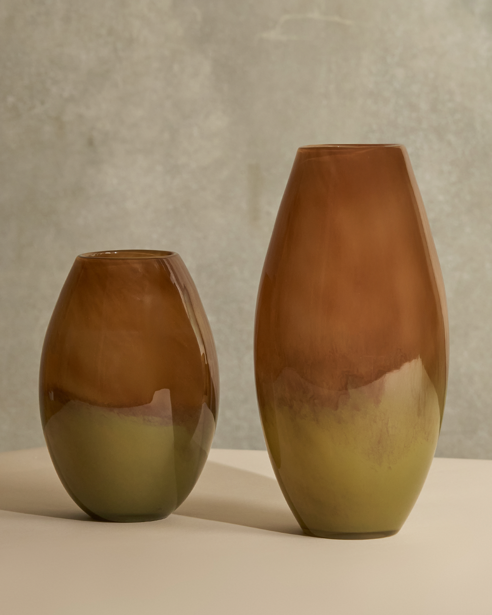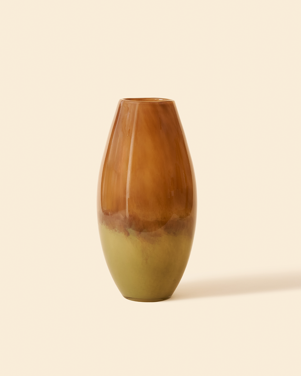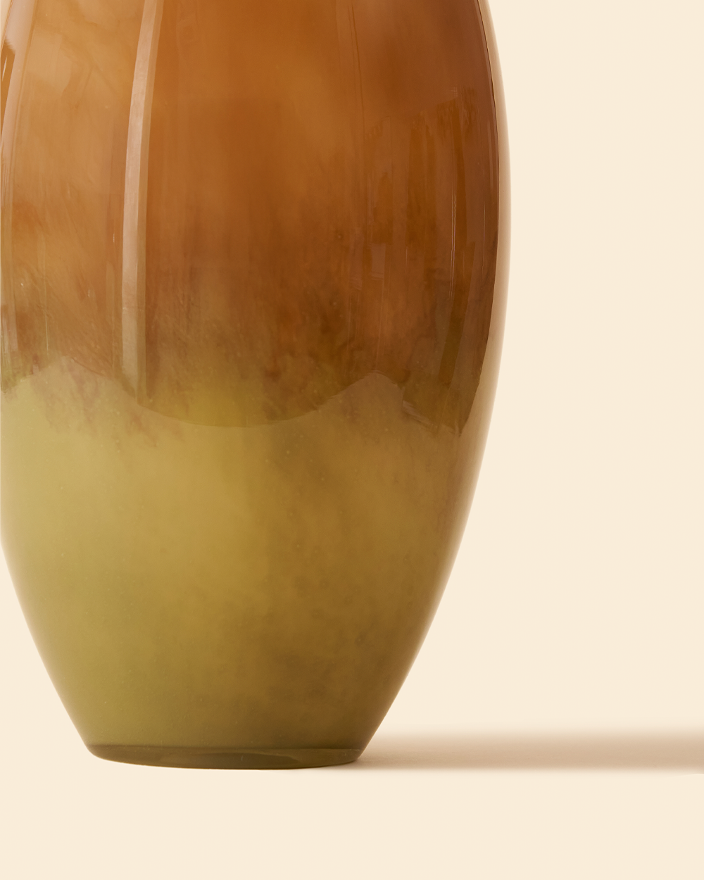 Эта ваза создана для того, чтобы стать изюминкой вашего интерьера. Изготовленная вручную из высококачественного стекла, она обладает градиентным переходом от светло-оливкового к коричневому, что придает ей неповторимый и изысканный вид. Ее округлая форма с широким основанием и сужающимся верхом не только делает ее устойчивой, но и подчеркивает ее элегантность.