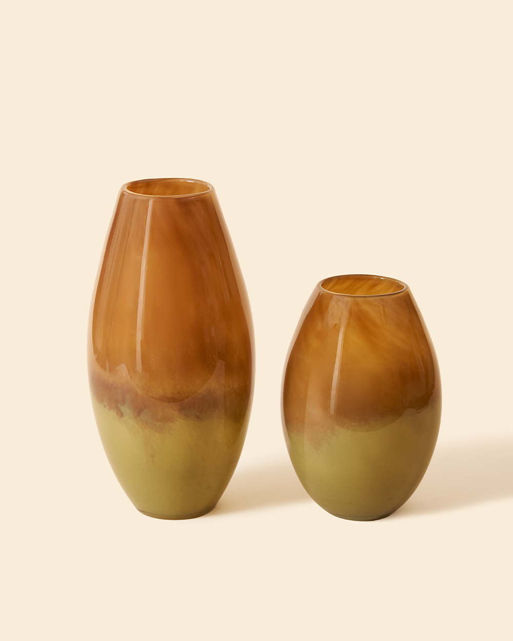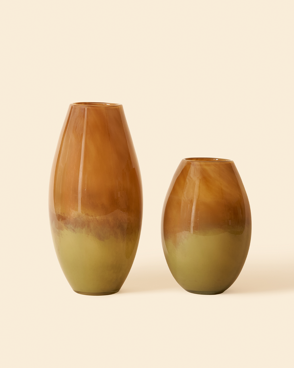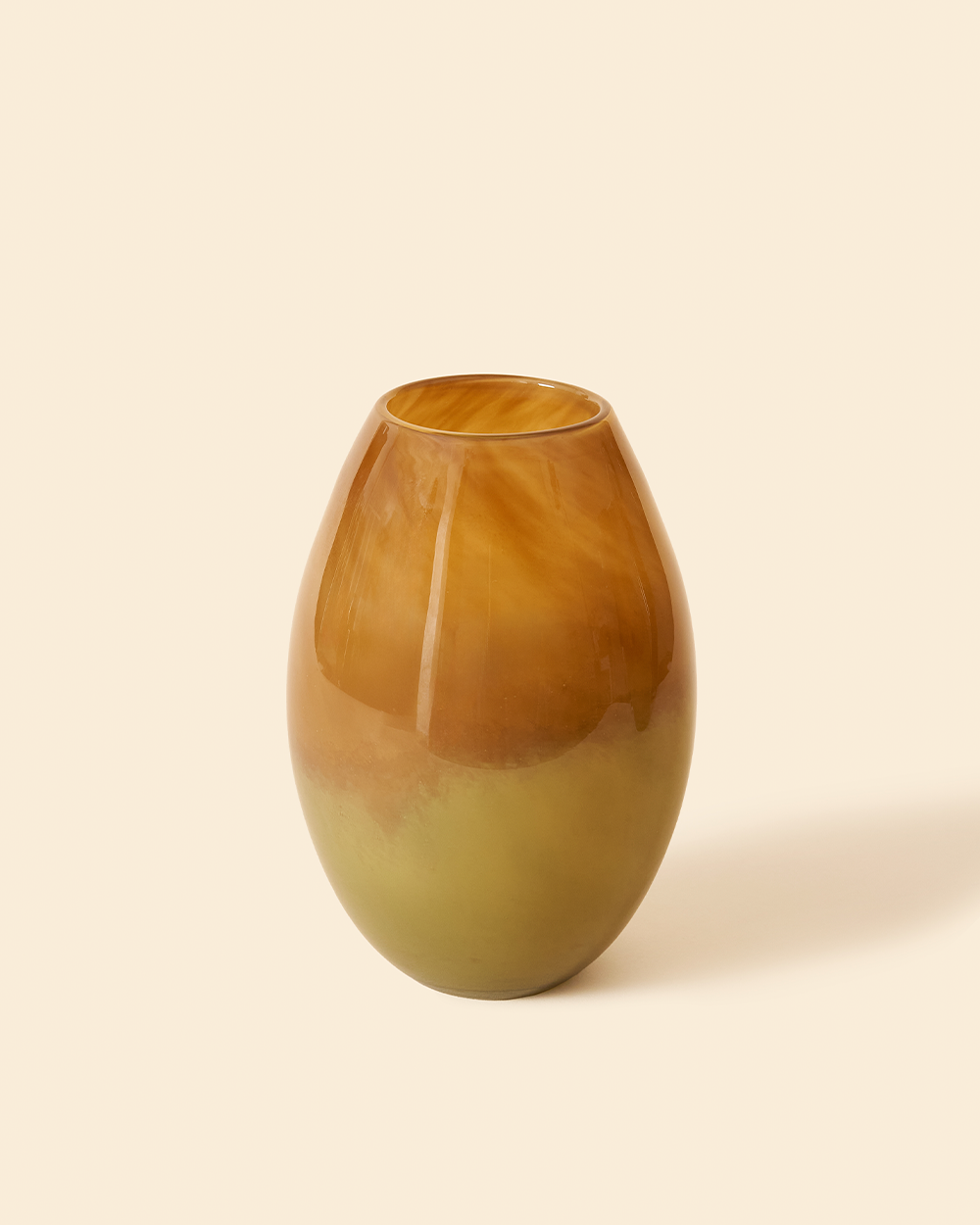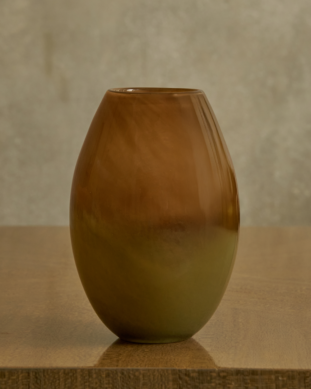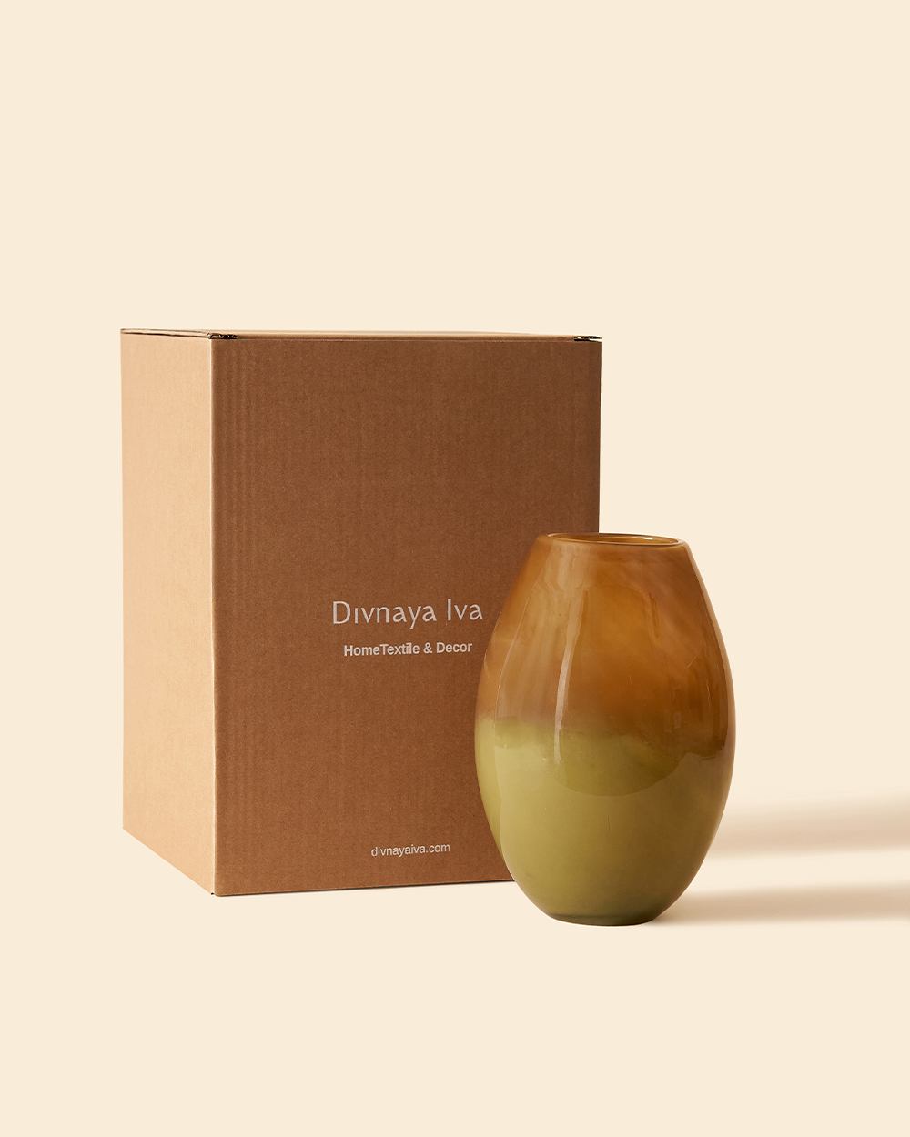 Эта ваза создана для того, чтобы стать изюминкой вашего интерьера. Изготовленная вручную из высококачественного стекла, она обладает градиентным переходом от светло-оливкового к коричневому, что придает ей неповторимый и изысканный вид. Ее округлая форма с широким основанием и сужающимся верхом не только делает ее устойчивой, но и подчеркивает ее элегантность.