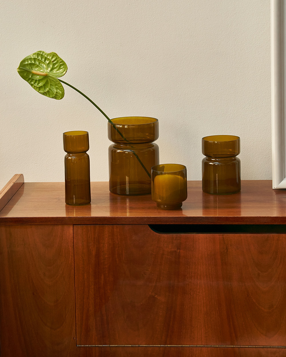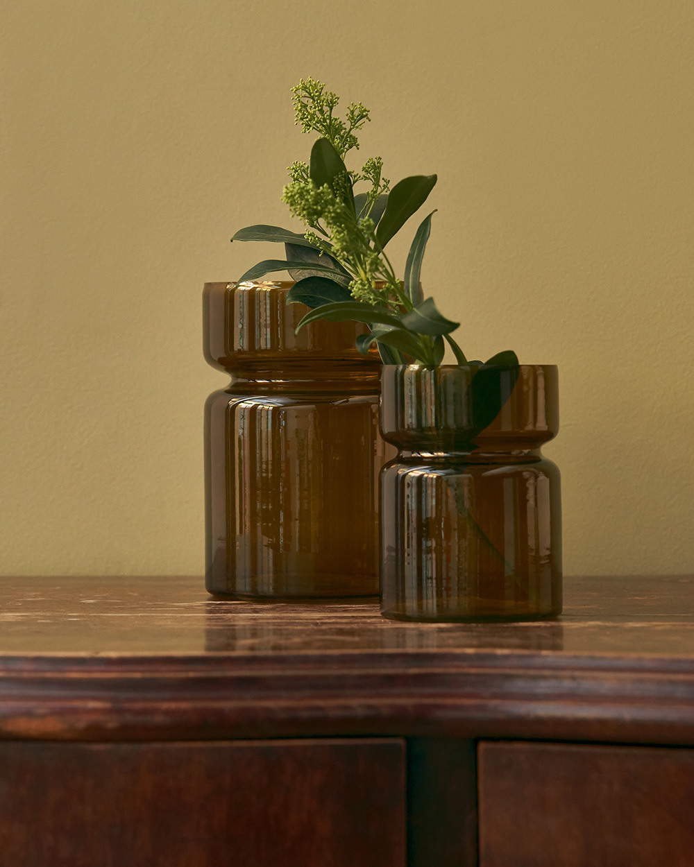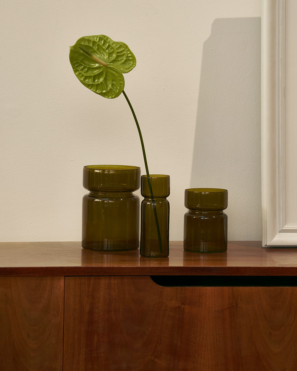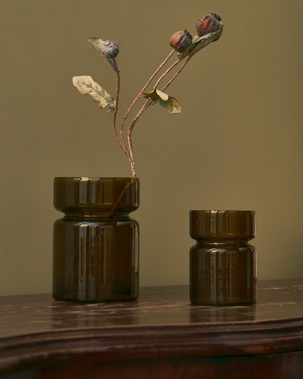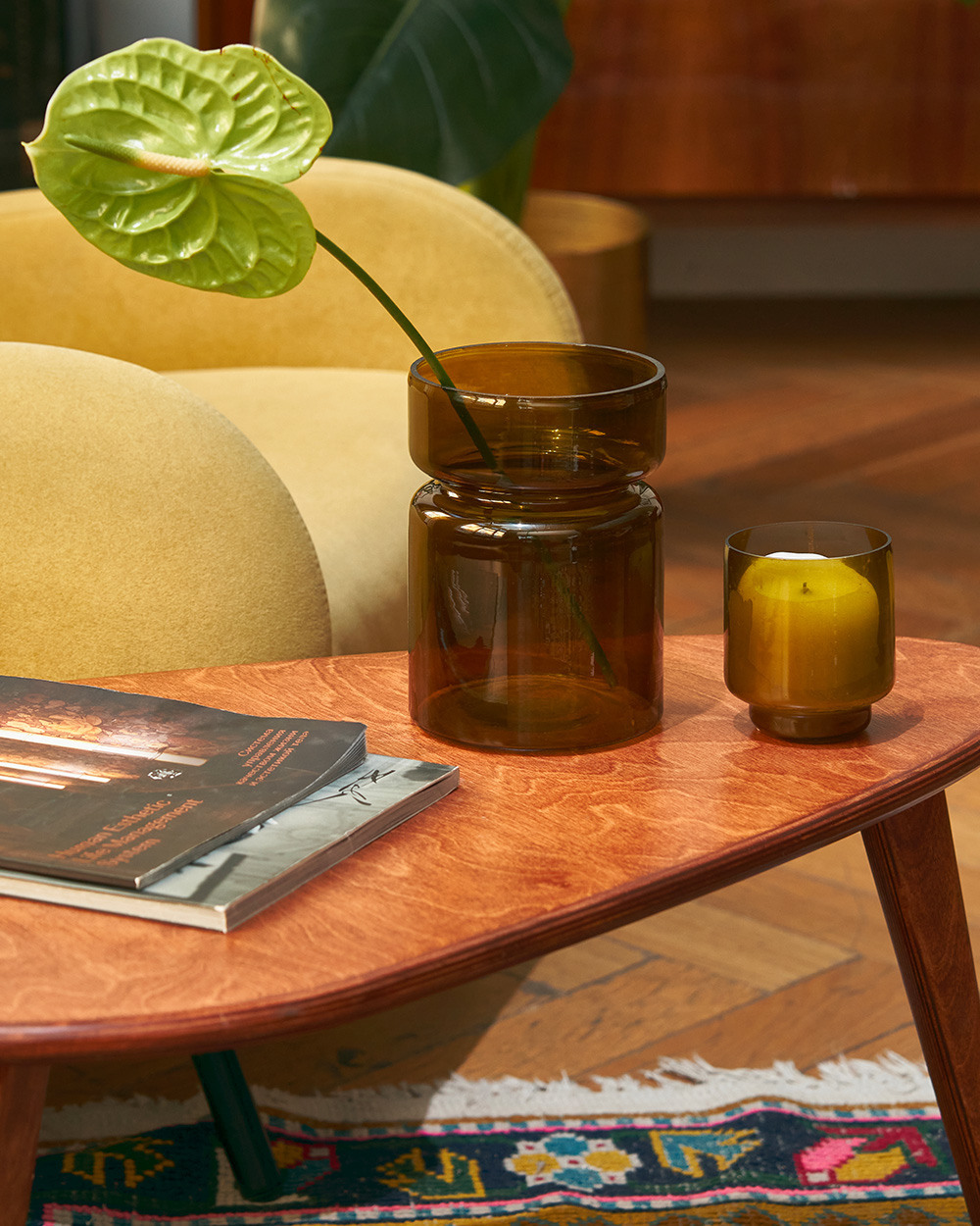 Стеклянная ваза благородного зелёного оттенка, сочетающая функциональность и эстетику. Изделие отличается элегантностью форм и идеально подходит не только для живых цветов, но и в качестве декоративного подсвечника для свечей.